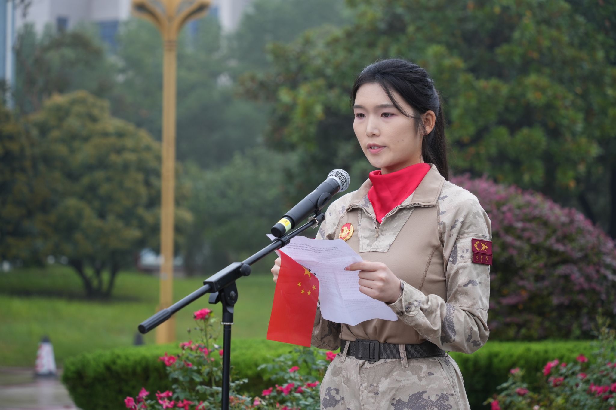 口腔医学院2022级学生、九三阅兵受阅方队民兵方队队员刘紫怡,作“以青春之我,承爱国之责”的发言,分享了她通过层层选拔,光荣入选民兵方阵,参加阅兵式受阅的宝贵经历和深切感悟。主题团课活动在集体合唱《歌唱祖国》的壮美歌声中落下帷幕。