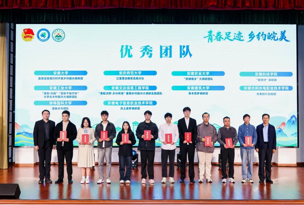 近日,安徽省大中专学生暑期“三下乡”社会实践暨第二届“百校千镇万村”大学生乡村振兴大调研专项活动总结大会,在安徽农业大学举行。我校“医脉乡兴”大学生社会实践团队荣获“优秀团队”荣誉称号。校团委副书记凌浩和学生团队负责学生傅博阳参加会议并领取奖项。