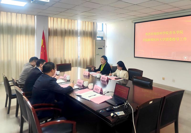 10月27日,宿州学院音乐学院院长钦媛一行赴学校团委开展省级非遗基地建设工作交流洽谈会,人文与健康学院副院长叶培结,校团委副书记凌浩以及社团管理科、艺术教育中心负责人共同参会。