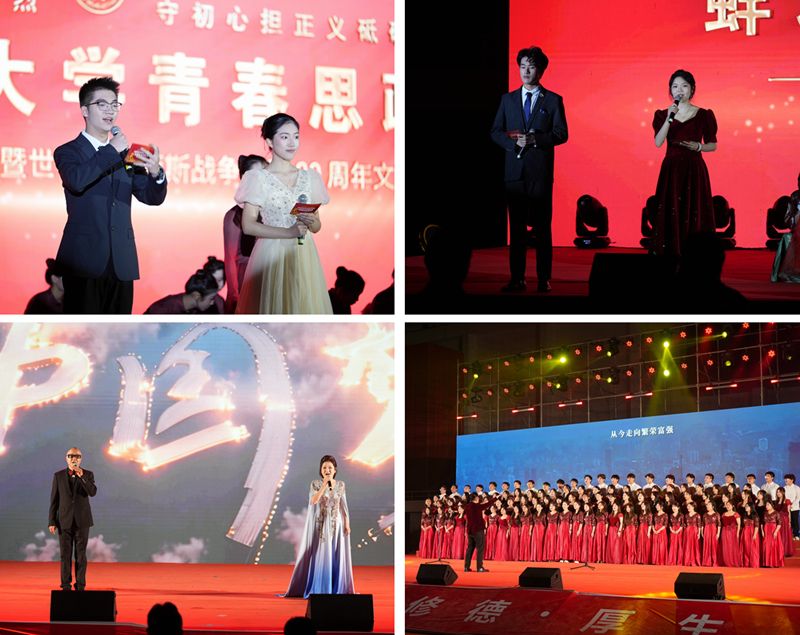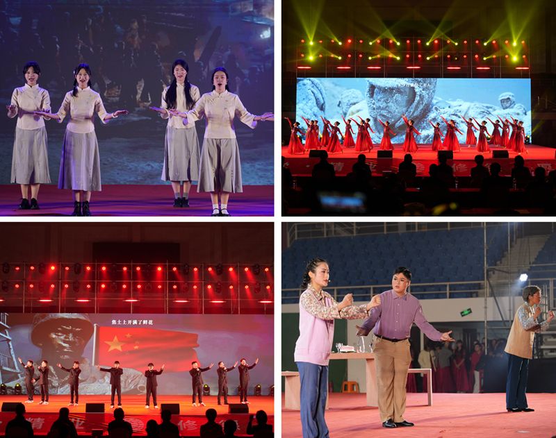 11月12日晚,青春思政课——纪念中国人民抗日战争暨世界反法西斯战争胜利80周年文艺汇演在龙湖体育馆震撼上演。本次演出以“铭国耻思忧患缅怀先烈 守初心担正义砥砺前行”为主题,形式多样,内容丰富。校领导朱立军、郑兰荣、姚强、刘浩、高仲姣与全校3000余名师生共同观看了演出。