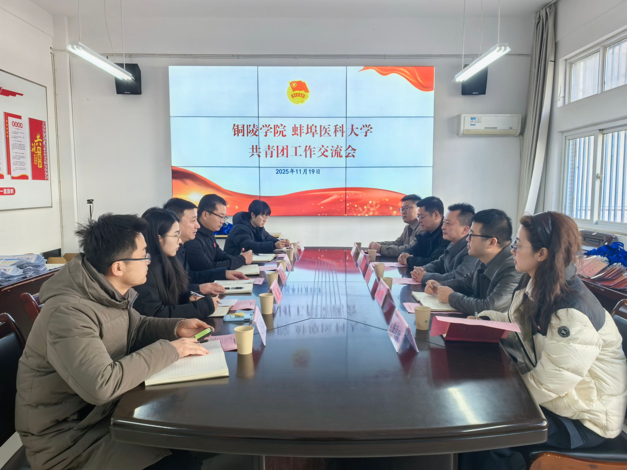 11月19日上午,铜陵学院团委书记张平平一行来我校调研交流共青团工作。校团委、第一临床医学院和药学院团委,全程参加交流交流活动。调研交流会由校团委副书记凌浩主持。
