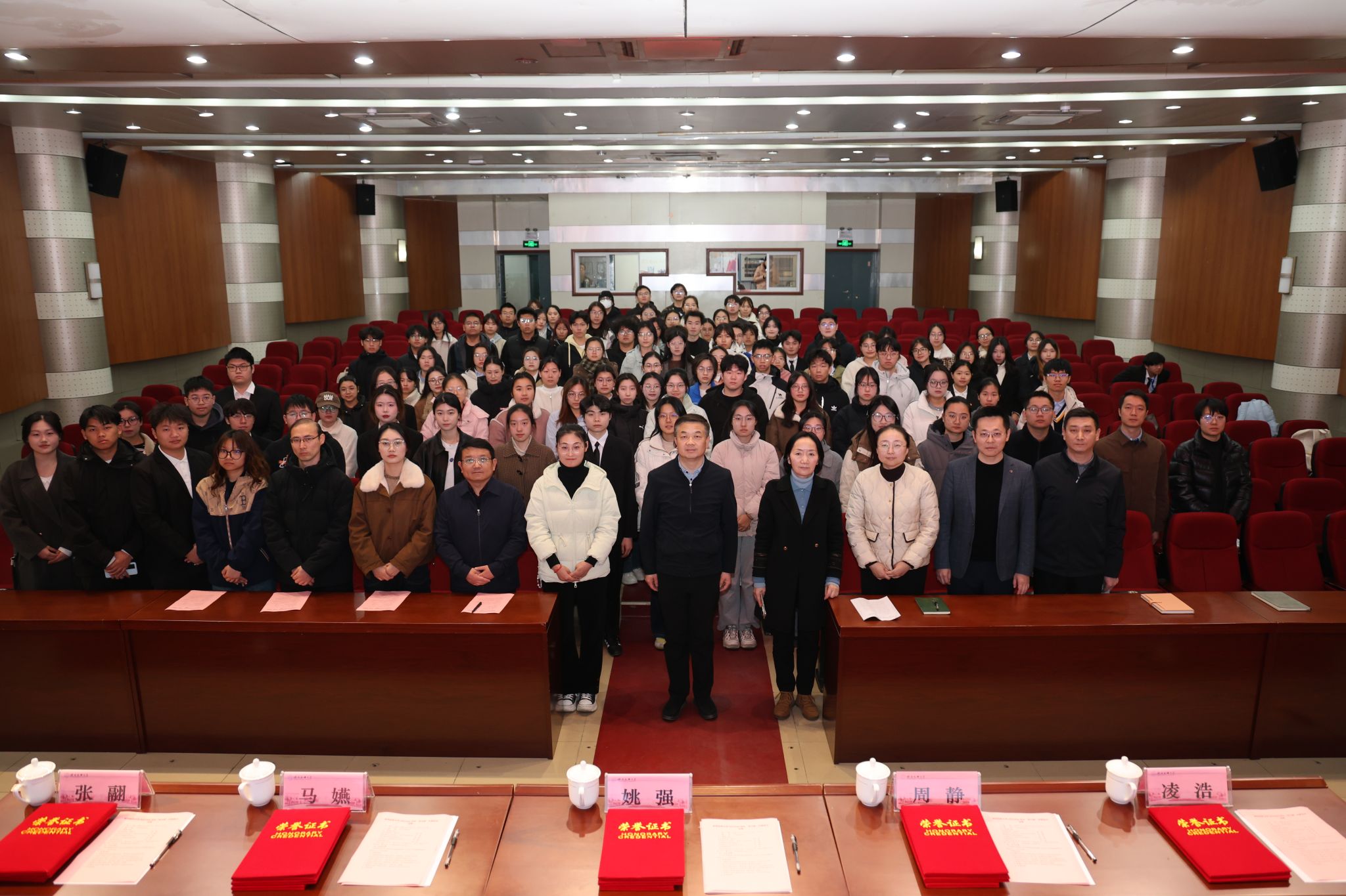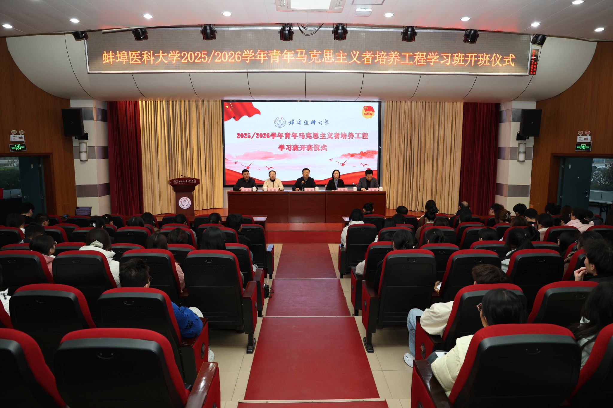 12月3日下午,我校2025/2026学年“青年马克思主义者培养工程”学习班开班仪式在学术报告厅举行。校党委常委、副校长姚强,党委学工部、党委宣传部、马克思主义学院、校团委负责同志,与本期学习班带班辅导员、指导教师、全体学员以及上期学习班优秀学员代表共同参加开班仪式。开班仪式前,全体与会人员共同观看了往届“青马班”学员原创微电影《十年一村——江淮乡村的数智蝶变》。