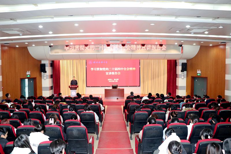 为深入学习贯彻党的二十届四中全会精神,落实立德树人根本任务,12月18日,学校举行学习贯彻党的二十届四中全会精神宣讲报告会。校党委书记朱立军作题为《担时代重任 做时代先锋——在学习贯彻党的二十届四中全会精神上见行动》的宣讲辅导报告。党委学工部、党委宣传部、校团委和马克思主义学院负责同志,各学院团委负责同志、辅导员和班级思政委员代表,2025/2026学年“青马班”指导教师及全体学员共同参加宣讲报告会。校党委常委、副校长姚强主持会议。